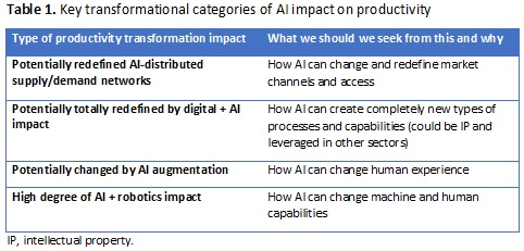 My goal in current research and consulting advisory services is the impact of artificial intelligence (AI) on productivity (Figure). There is now a huge amount of research and activity in industry, academia, and governments in the race to understand how current processes, products, skills, and services will change with the advent of AI. In my own career of 35 years, this is different from any other previous technology change seen, where the very essence of an object or experience is changing, not just the technology itself.