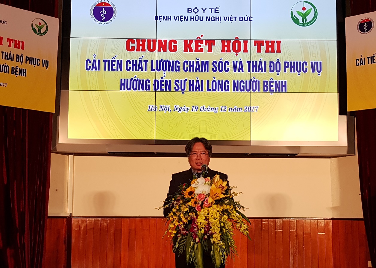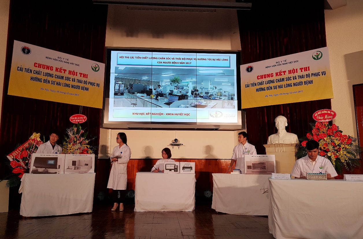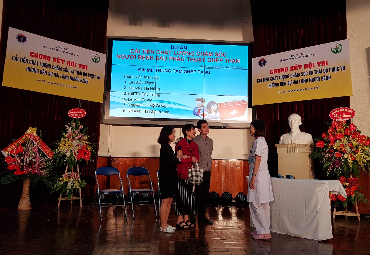Và mới đây, Bệnh viện Hữu nghị Việt Đức đã tổ chức chung kết cuộc thi “CẢI TIẾN CHẤT LƯỢNG CHĂM SÓC VÀ THÁI ĐỘ PHỤC VỤ HƯỚNG ĐẾN SỰ HÀI LÒNG NGƯỜI BỆNH”. Đến tham dự có các đại biểu: BSCK II Trần Thị Bích Hằng – Chủ tịch Công đoàn Y tế Việt Nam; ThS. Nguyễn Trọng Khoa – Phó Cục trưởng Cục quản lý khám chữa bệnh Bộ Y tế; ThS. Phạm Đức Mục – Chủ tịch Hội Điều dưỡng Việt Nam; ông Nguyễn Anh Tuấn - Viện trưởng Viện Năng suất Việt Nam; bà Vũ Hồng Dân - Trưởng phòng tư vấn và cải tiến năng suất Viện năng suất Việt Nam; GS, TS. Trần Bình Giang – Bí thư Đảng ủy, Giám đốc Bệnh viện Hữu nghị Việt Đức; TS. Trần Đình Thơ - Phó Giám đốc bệnh viện; TS. Lê Tư Hoàng – Chủ tịch Công đoàn bệnh viện cùng sự tham dự của lãnh đạo các bệnh viện, lãnh đạo các phòng ban cùng các chi hội điều dưỡng.