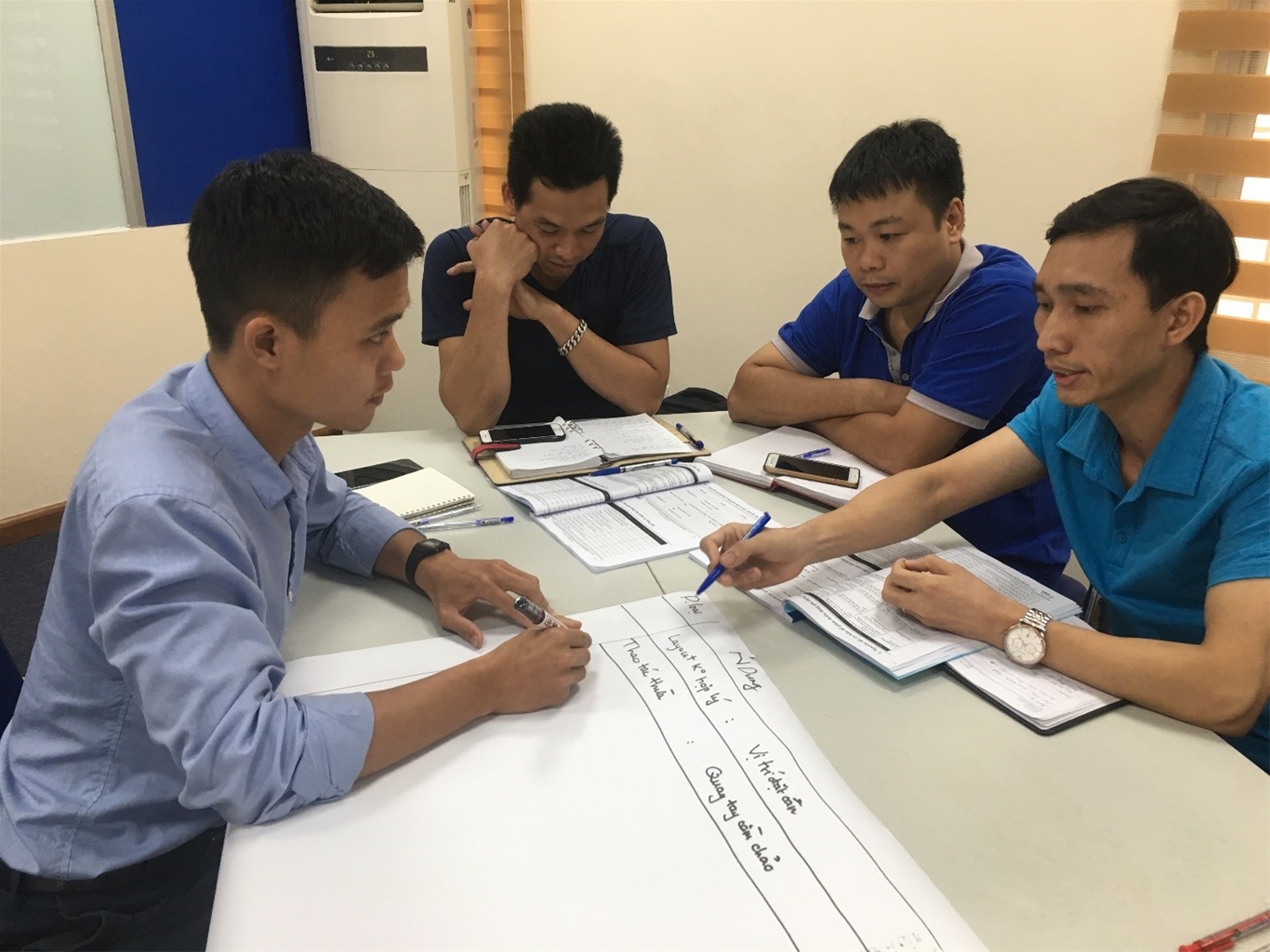 Thực hành khảo sát hiện trường sản xuất tại doanh nghiệp điểm, học viên chia thành 03 nhóm và tiến hành triển khai một số nội dung như khảo sát hiện trạng sản xuất tại khu vực điểm của Công ty để xác định dòng vận chuyển của sản phẩm và các loại lãng phí, đồng thời ghi lại hình ảnh thực tế để so sánh hiện trạng trước và sau cải tiến. Ông Tiêu Hải Đăng – Giám đốc Công ty CP Đầu tư xây dựng phát triển Thủ Đô chào mừng học viên đến với Công ty và trao đổi về các khó khăn mà Công ty gặp phải trong quá trình sản xuất; khâu, công đoạn hay xảy ra sự cố...Qua đó, Ông bày tỏ hy vọng học viên sẽ giúp Công ty nhận diện những vấn đề còn tồn đọng tại hiện trường sản xuất và đề xuất những đề án cải tiến nhằm cải tiến hiện trường sản xuất, qua đó nâng cao năng suất so với hiện trạng.