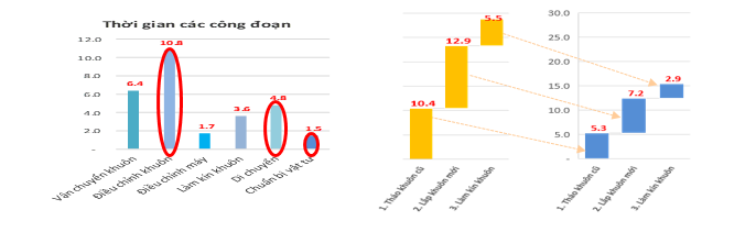 Triển khai đo lường, phân tích: Thời gian thay khuôn trung bình là 30 phút