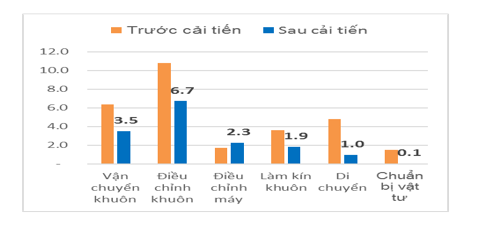 Cải tiến thao tác thay khuôn, giảm thời gian thay khuôn: kết quả thời gian thay khuôn máy hút từ 30 phút xuống còn 15 phút.