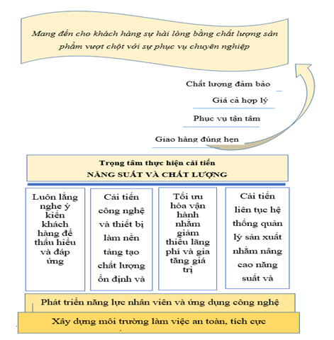 - Luôn coi trọng sáng kiến, cải tiến hợp lý hóa trong sản xuất để hạ giá thành sản phẩm, tăng tính cạnh tranh của sản phẩm trên thị trường.