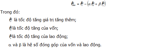 Công thức tính tốc độ tăng năng suất các nhân tố tổng hợp theo phương pháp hạch toán do Tổ chức Năng suất Châu Á (APO) đưa vào áp dụng có dạng: