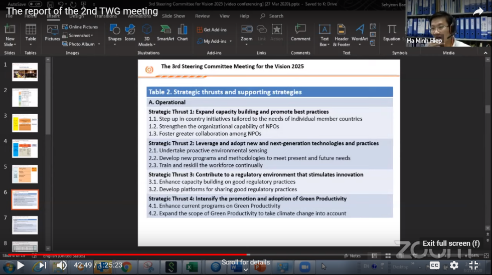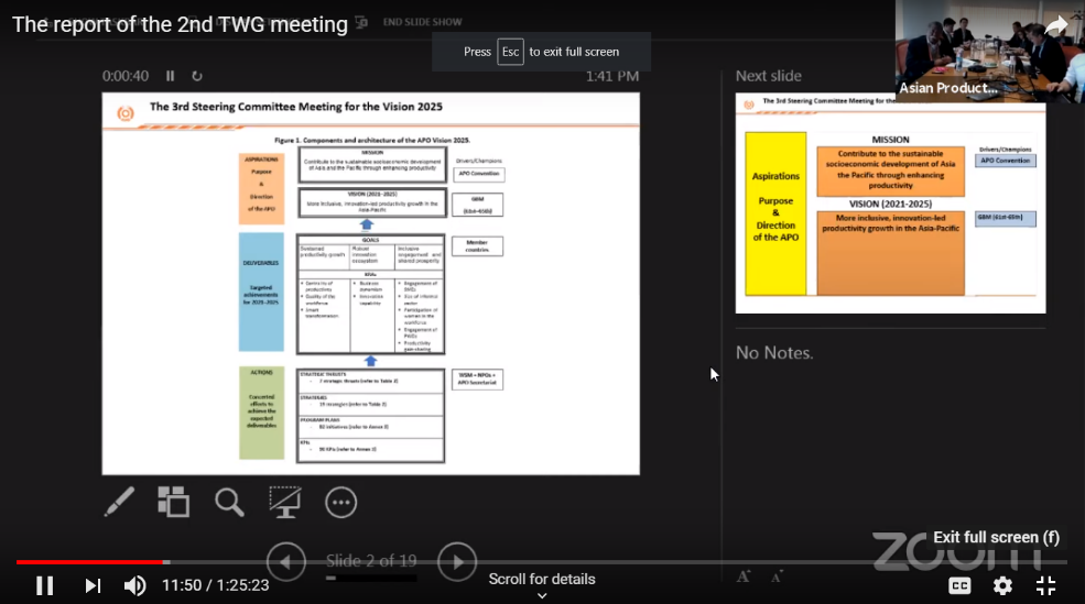 Nhằm khẩn trương hoàn thiện Tầm nhìn và Chiến lược mới đến năm 2025, Tổ chức Năng suất Châu Á (APO) đã tổ chức Hội nghị lần thứ ba Ban chỉ đạo xây dựng Tầm nhìn và Chiến lược mới đến năm 2025 của APO theo hình thức trực tuyến vào ngày 27/3/2020.