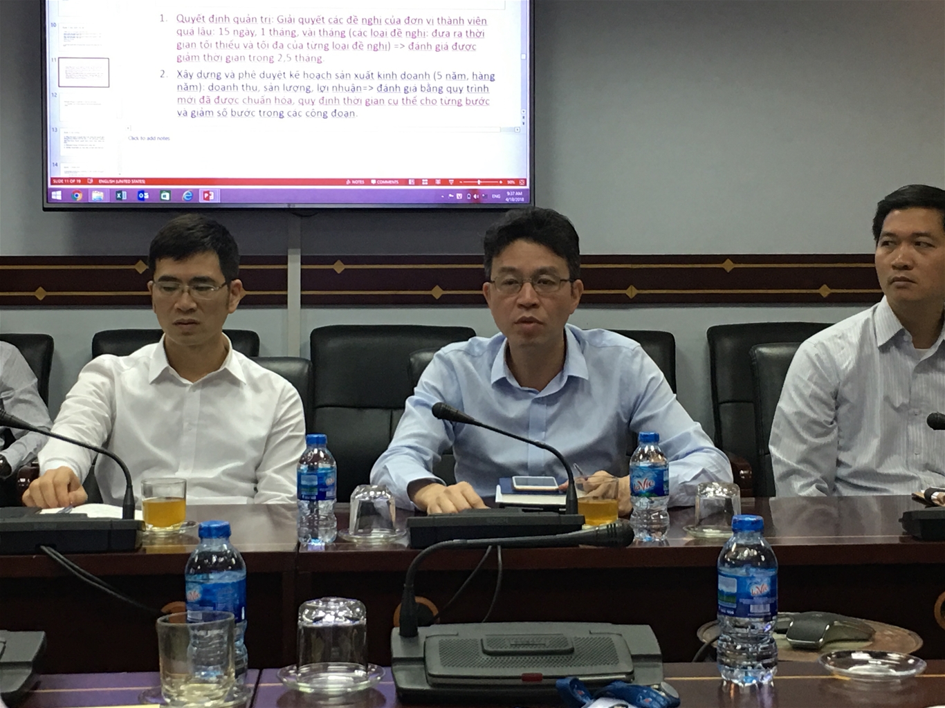 Tham gia buổi làm việc, Ông Nguyễn Anh Tuấn- Viện trưởng Viện Năng suất Việt Nam đánh giá cao sự quyết tâm của Ban lãnh đạo Công ty trong dự án lần này. Ông khẳng định “ Trên thế giới, những Doanh nghiệp lớn như Boeing, British Airways, Roll Royce đều triển khai các dự án cải tiến nhằm giảm thiểu lãng phí, nâng cao hiệu quả sản xuất kinh doanh. Doanh nghiệp Việt Nam nếu muốn phát triển hơn nữa thì không thể không cải tiến”. Ông lấy ví dụ về trường hợp của Ngân hàng Đại chúng (PVcombank). Trước đây, khi khách hàng đến chuyển tiền trong nước thì họ sẽ phải ký 4 chữ ký mới được xét duyệt. Thủ tục rườm rà này gây không ít phiền hà cho khách hàng. Đứng trước thực trạng đó, PVcombank đã quyết tâm thực hiện dự án cải tiến, xem xét lại các thủ tục giấy tờ, văn bản pháp luật nhằm rút ngắn thời gian giao dịch. Và kết quả, hiện tại khách hàng đến chuyển tiền chỉ cần ký 1 chữ ký mà vẫn đảm bảo tuân thủ theo quy định của Pháp luật.