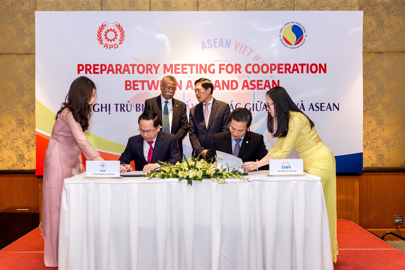 Nằm trong khuôn khổ hội nghị trù bị thúc đẩy hợp tác giữa APO và ASEAN, Viện Năng suất Việt Nam (VNPI) và Tập đoàn điện lực Việt Nam (EVN) đã ký kết Bản ghi nhớ hợp tác với sự chứng kiến của Thứ trưởng Bộ Khoa học và Công nghệ Trần Văn Tùng, Tổng thư ký Tổ chức Năng suất châu Á (APO) cũng như toàn thể đại biểu tham dự Hội nghị.